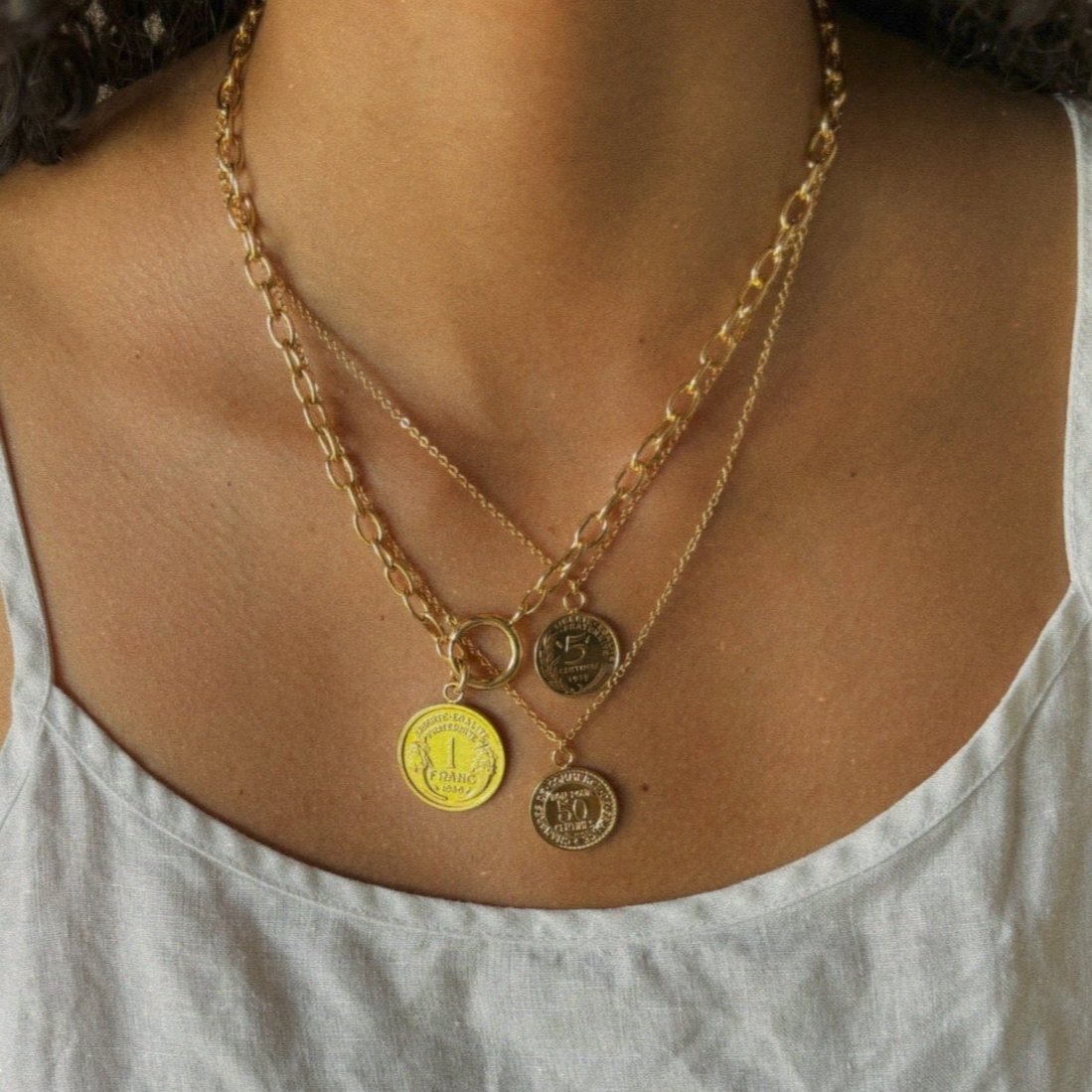 Collier réalisé à partir d'une véritable pièce de monnaie Française restaurée par nos soins.